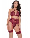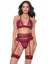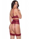 Zamamno elegantan komplet grudnjaka, haltera i gaćica od romantične merlot čipke.