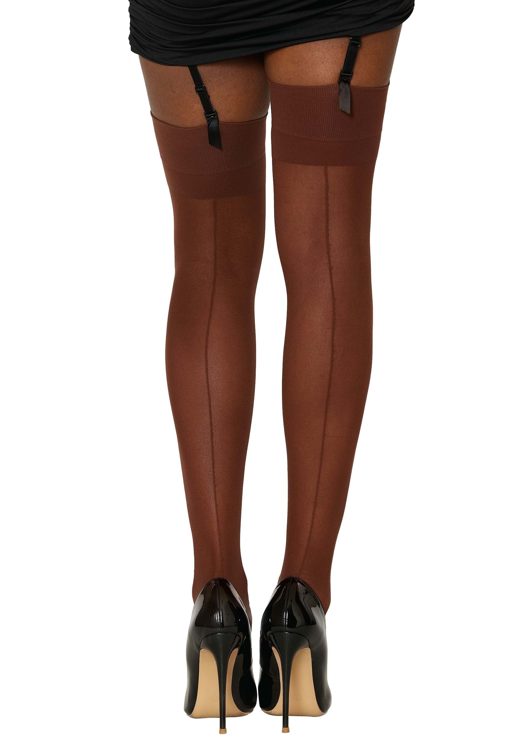 Čarape za haltere u smeđoj boji sa obrubom i detaljem nata