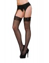 Crne mrežaste čarape za haltere sa čipkastom obrubom.