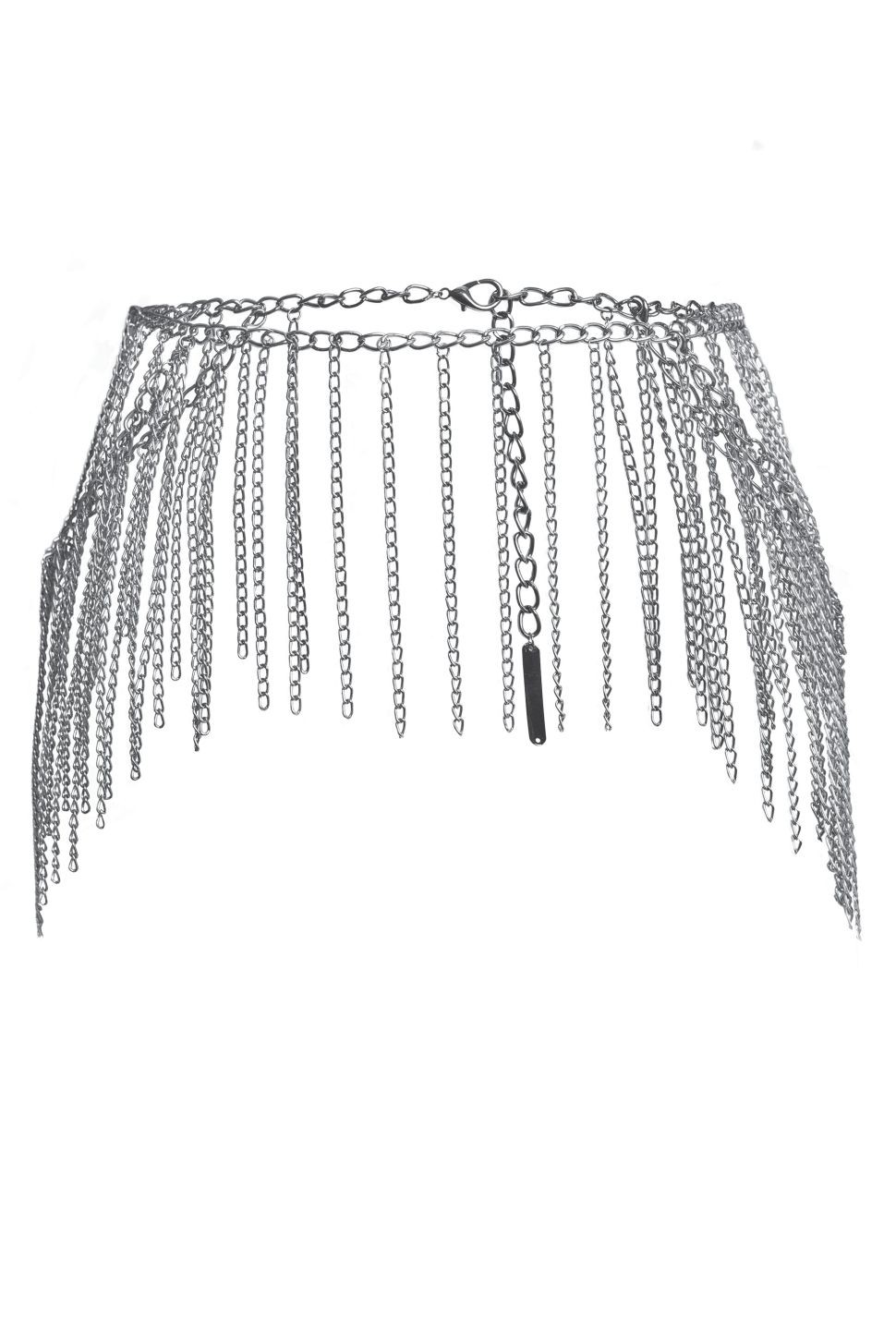 Ukras za tijelo od srebrnih lančića. Podesiv po širini.