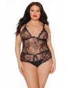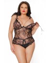 Senzualan bodi s rasporkom u crnoj čipci sa decentim detaljima zlatnih lančića.