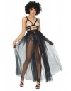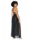 Remenje je podesivo po dužini, na leđima i naramenicama. Sprijeda postoje 2 kukice za lakše i brže svlačenje. Na leđima su remenčići povezani s metalnim prstenom dajući oštrinu izgledu. Lepršava i raskošna suknja od dvosloja crnog tila nježno zaokružuje čitav look.