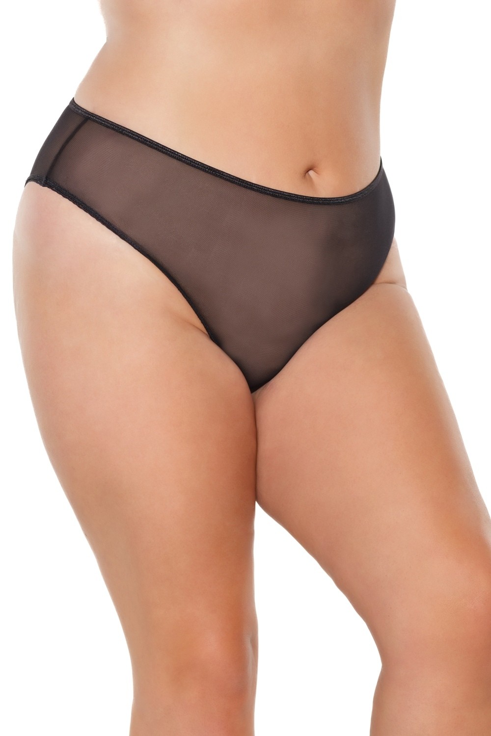 Gaćice visokog struka od elastičnog i mekog crnog tila.