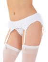 Bijeli halteri sa volanima, elastični i podesivi u struku sa kopčanjem straga.