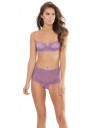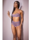 Grudnjak i gaćice u lavanda boji od čipke s detaljima u boji breskve. Grudnjak je pojačan žicom, kopča se na leđima, a naramenice su podesive. Seksi gaćice oblikuju struk.