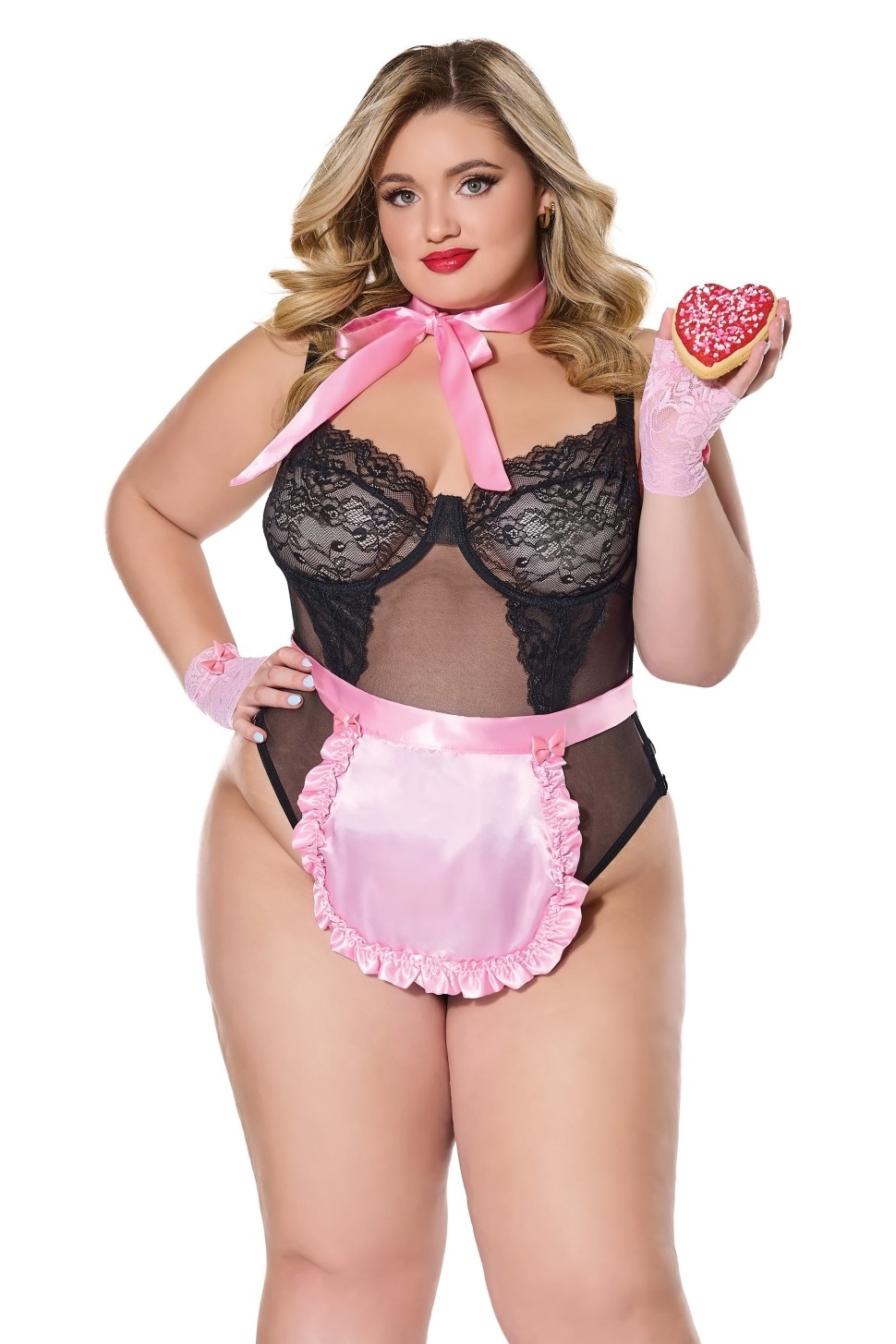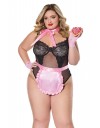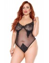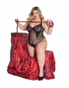 Bodi je od kombinacije crnog elastičnog tila i crne čipke. Košarice su od meke crne čipke i podstavljene su žicom. Leđa su otvorena. Gaćice su tanga visokog struka koje vizaualno izdužuju figuru i naglašavju struk. Gaćice su podesive na leđima sa tri elastične trakice. Naramenice su podesive po dužini i mogu se prekrižiti na leđima.