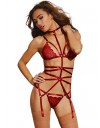 Dvodjelni koplet čipkastog crvenog donjeg rublja sa seksi trakicama. Remenje je podesivo te povezano ukrasnim prstenima. Zatvarač je straga te su halteri pričvršćeni uz remenje. Ovaj seksi crveni koplet savršeno oblikuje tijelo, istiće obline i samu figuru tijela.