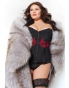 Opčinjujući crni korzet sa crvenim satenskim vezom. Detalj nježne crvene čipke obavija se duž sredine korzeta stvarajući iluziju još užeg struka