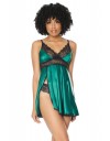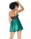 Svileni smaragdni babydoll obrubljen crnom paučinastom čipkom delikatno grli tijelo stvarajući božanstvenu siluetu.