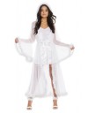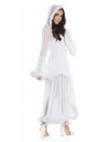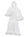 Prekrasan bijeli ogrtač sa zvonastim rukavima i kapuljačom. Obrubljen umjetnim krznom i veže se vezicom sprijeda.