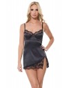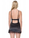 Sexy satenska crna spavaćica sa prorezom na nozi i čipkastim detaljima.