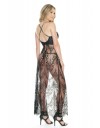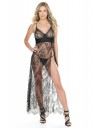 Crna duga čipkasta spavaćica s bočnim visokim prorezom. Naramenice su podesive.