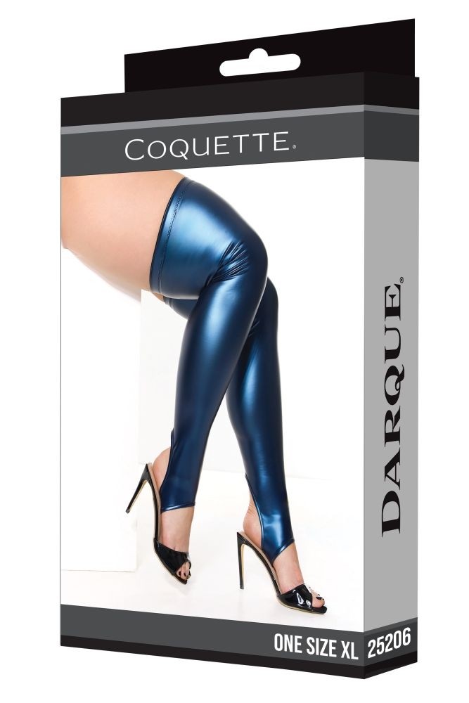 Metalik plave wetlook samostojeće čarape sa otvorenom petom i prstima.