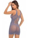 Plava haljina je jednostavnih linija , otvorenih ramena ukrašena detajima ruže.