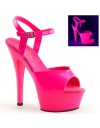 Hot pink cipele sa satenskim gornjim dijelom. Platforma i peta s UV efektom pri crnom svjetlu.