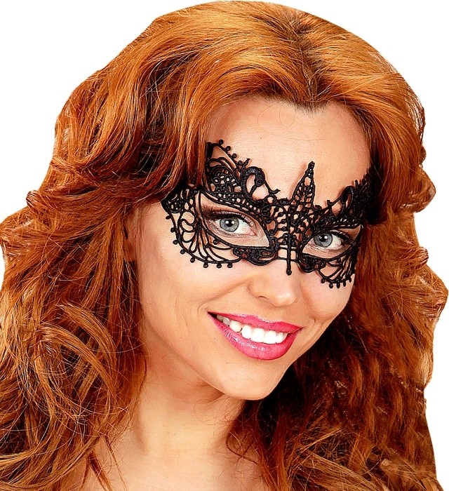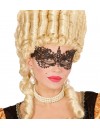 Crna čipkasta maska sa satenskim vrpcama za vezanje.