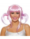 Sintetička duga perika roze boje sa šiškama.