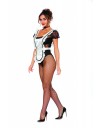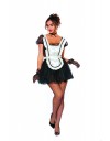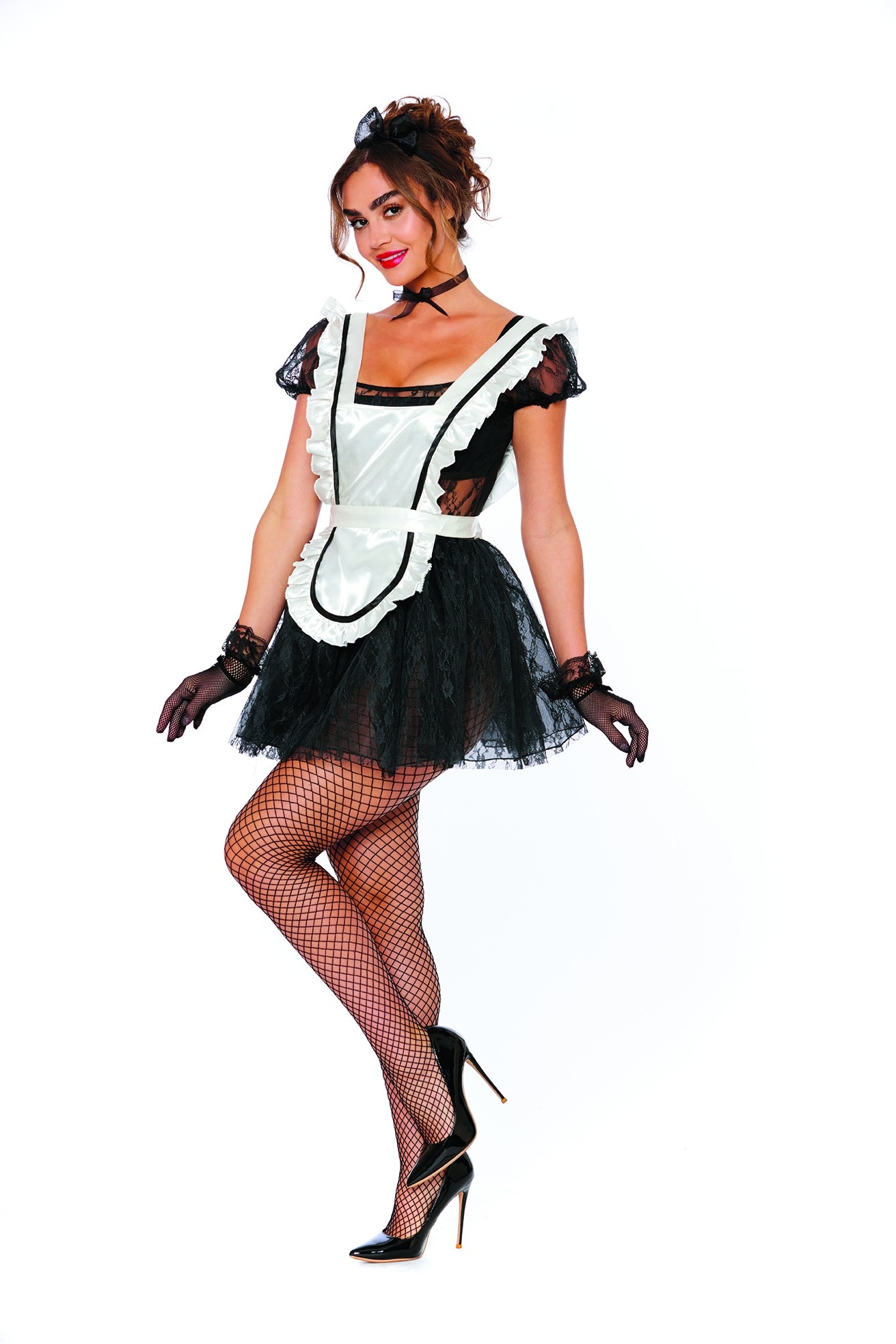 Kostim se sastoji od 5 dijela. Bodi od crne čipke visokog izreza naglasit će i izdužiti noge. Preko njega dolazi crna čipkasta suknja. Uz kostim dolazi i neizostavna pregača od bijelog satena koja se veže na leđima, choker ogrlica i crna trakica za kosu sa detaljem mašnice.