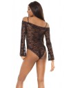 Bodi od čipke s rukavima koji se šire u zvono. Kopča se među nogama. Bodi ima i naramenice koje se mogu stavljati i skidati po želji.