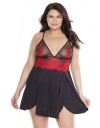 Zavodljivi babydoll crne boje sa detaljima crvene ćipke na mekanim trokutićima. Donji dio je lepršav sa dva izazovna proreza.