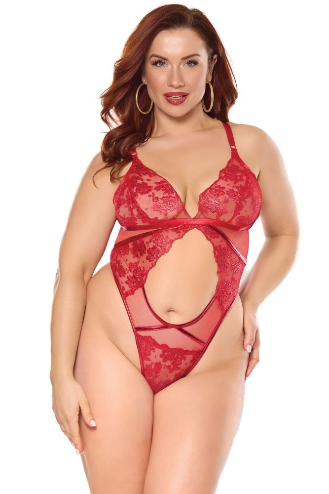 Bodi je od kombinacije crvenog tila i čipke. Choker ogrlica se može skinuti. Košarice su trokutastog oblika i nisu podstavljene žicom. Leđa su otvorena. Gaćice su tanga visokog struka koje vizaualno izdužuju figuru i naglašavju struk. Naramenice su podesive po dužini i bodi je podesiv na leđima po širini.