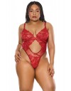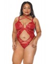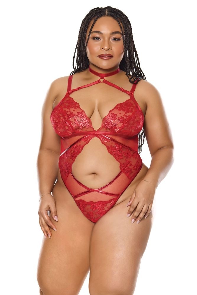 Očaravajući crveni bodi sa choker ogrlicom.